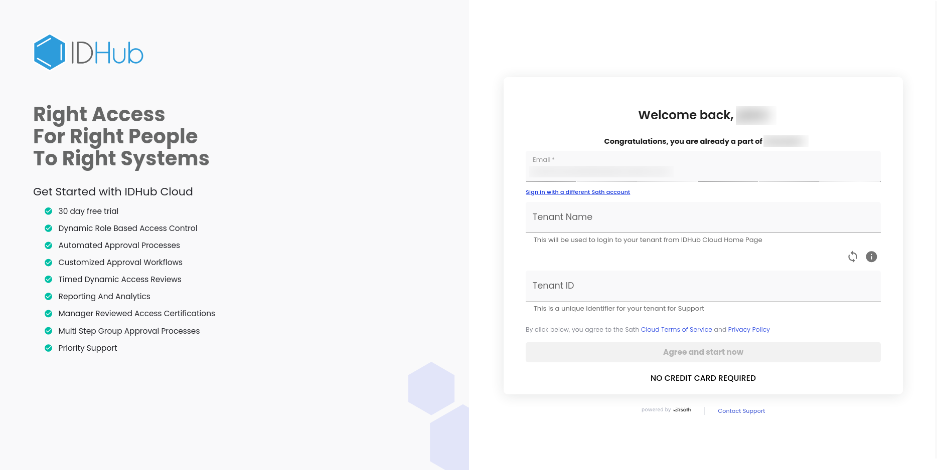 • Tenant name will be used to login to your tenant from the IDHub cloud page.