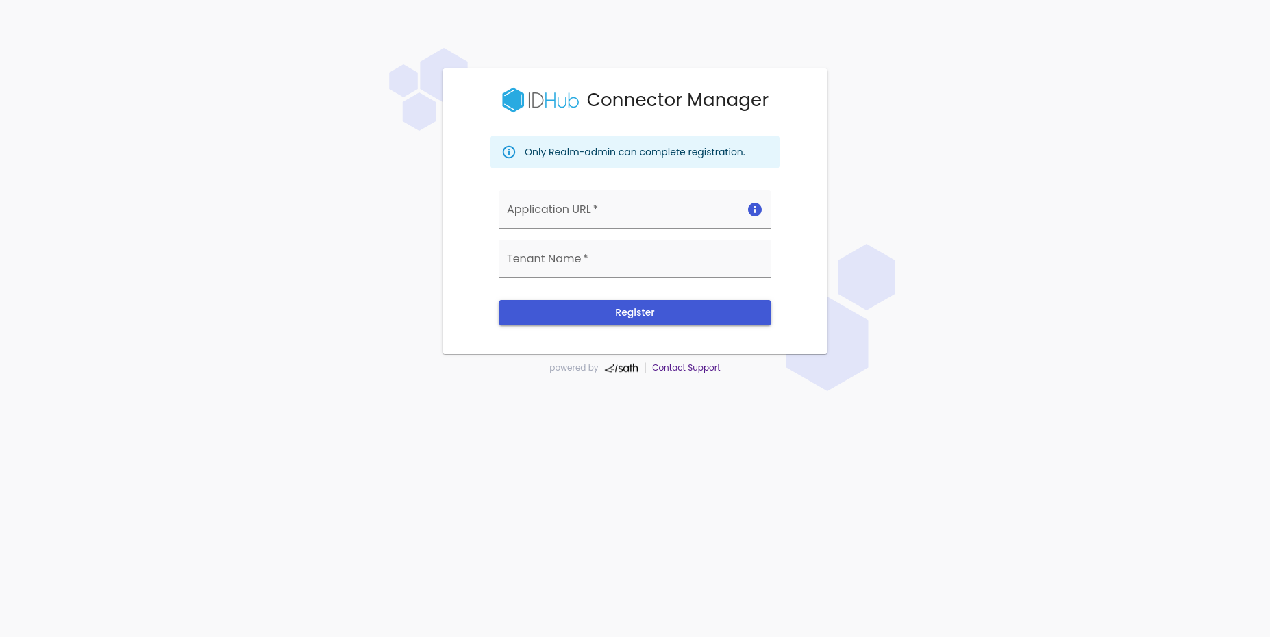 • Enter the application URL and the tenant name. The application URL is the IDHub application URL for example: https://app.sath.com