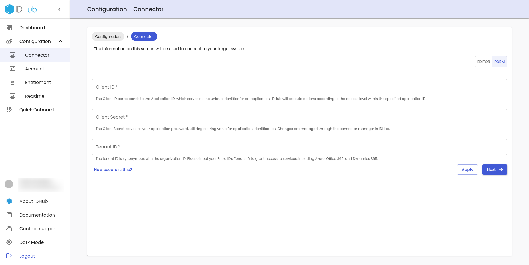 You would need a IDHub Subscription and tenant information before you can on-board Entra ID connector.