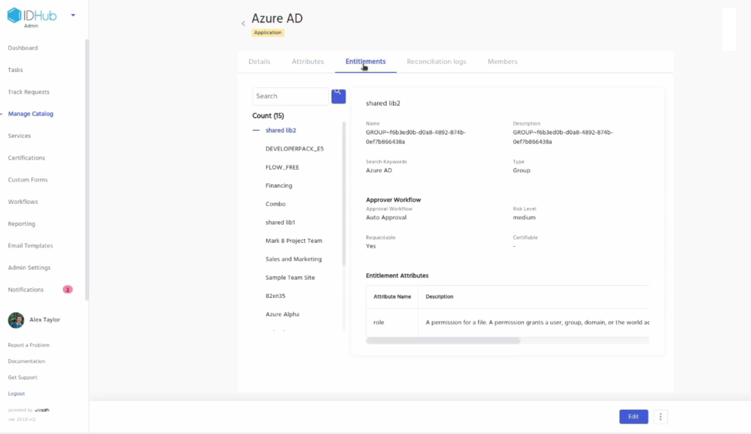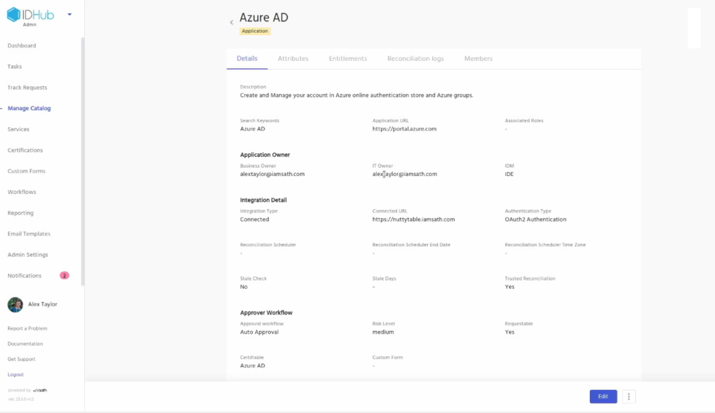 Now, log into your IDHub tenant and then click on the Manage catalog. You will see the Entra ID application. Click on it. You can see the details of the application