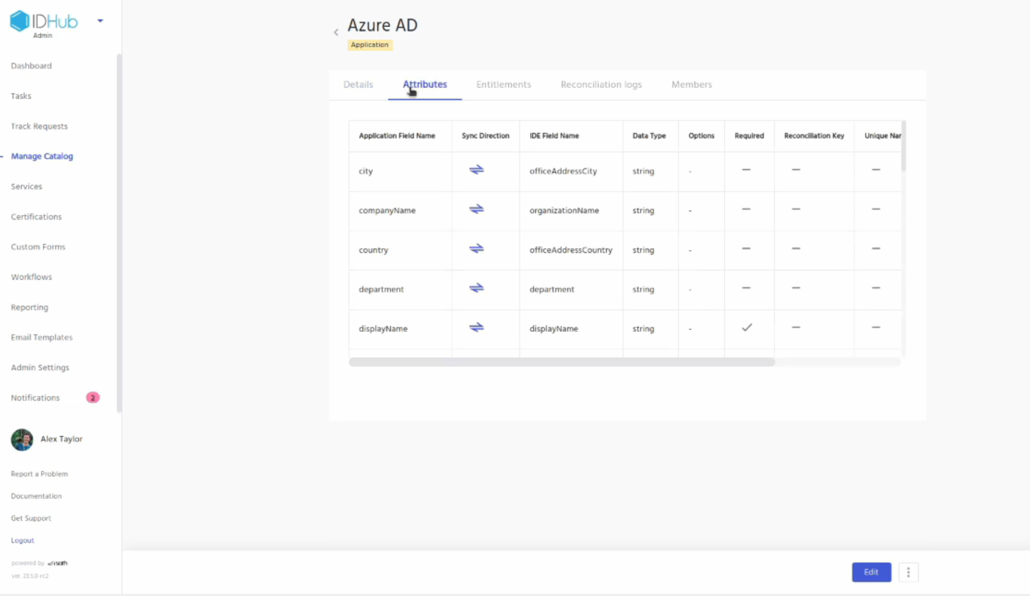 Click on the attributes tab and it will show you the different attributes of the application along with it’s sync directions.