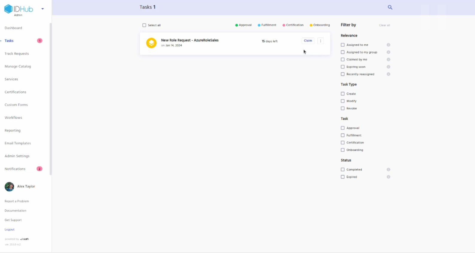 Now, Goto tasks and then claim and approve the request.