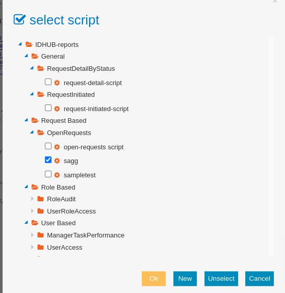 Selecting Script file for the Report