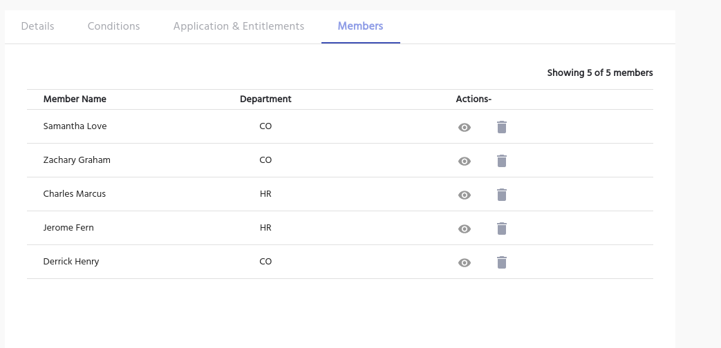 IDHub allows you to view the members of the role and take actions on them. As is shown in the screenshot below, this section will show the following details: